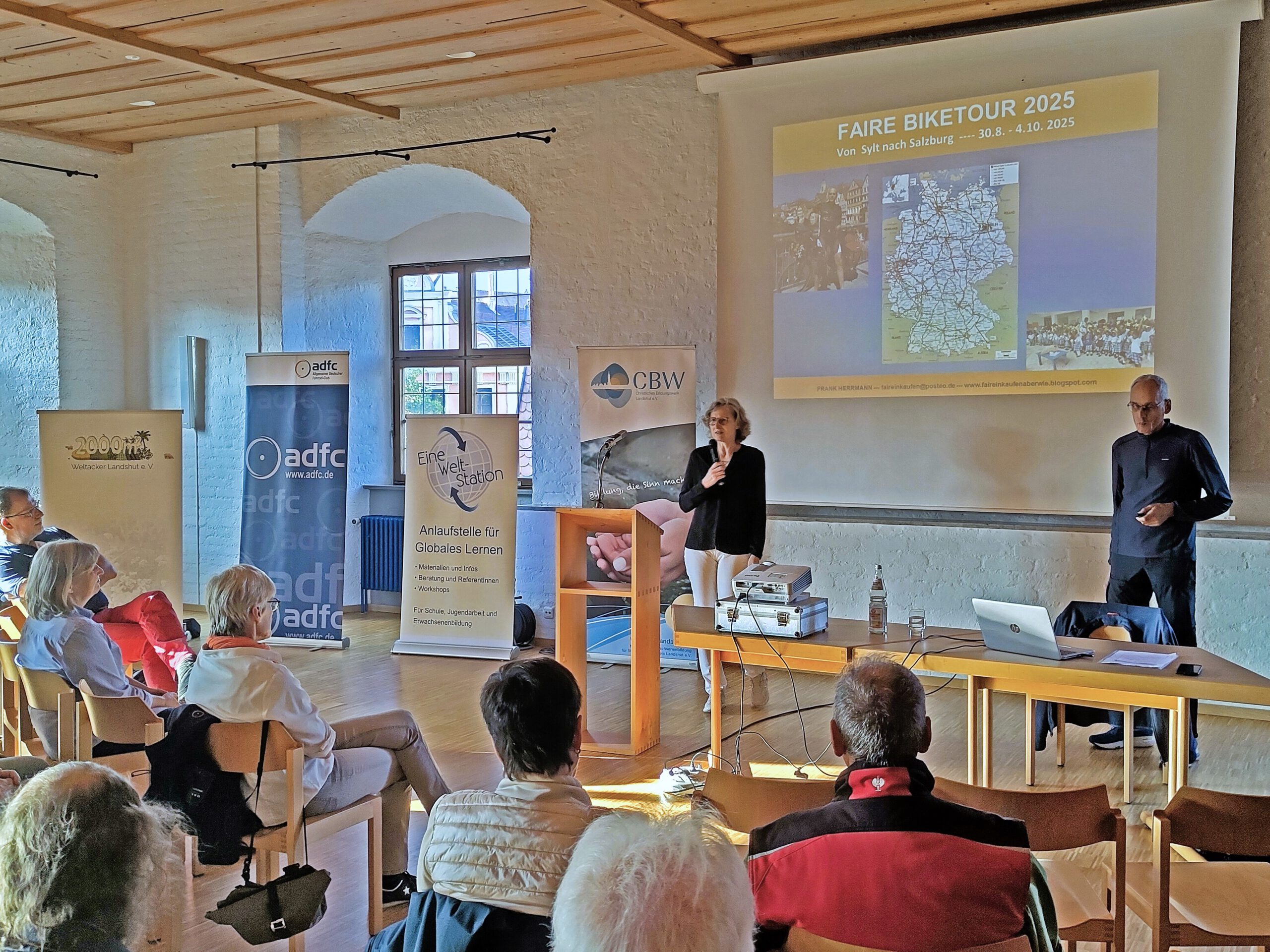 Der Reiseexperte, Sachbuchautor und begeisterte Radfahrer Frank Herrmann nimmt uns mit auf seine 11. Faire Biketour, die ihn dieses Jahr von Sylt nach Salzburg führt. In Landshut hat er bei seinem Vortrag „FAIRreisen“ über Probleme des Massentourismus gesprochen, unterschiedliche Verkehrsmittel verglichen und Möglichkeiten eines fairen Reisens dargestellt. Ausführlich beleuchtete er Umweltschäden und soziale Ungleichheiten bei Reisen. Overtourism, CO2-Ausstoß, Müllmassen in…