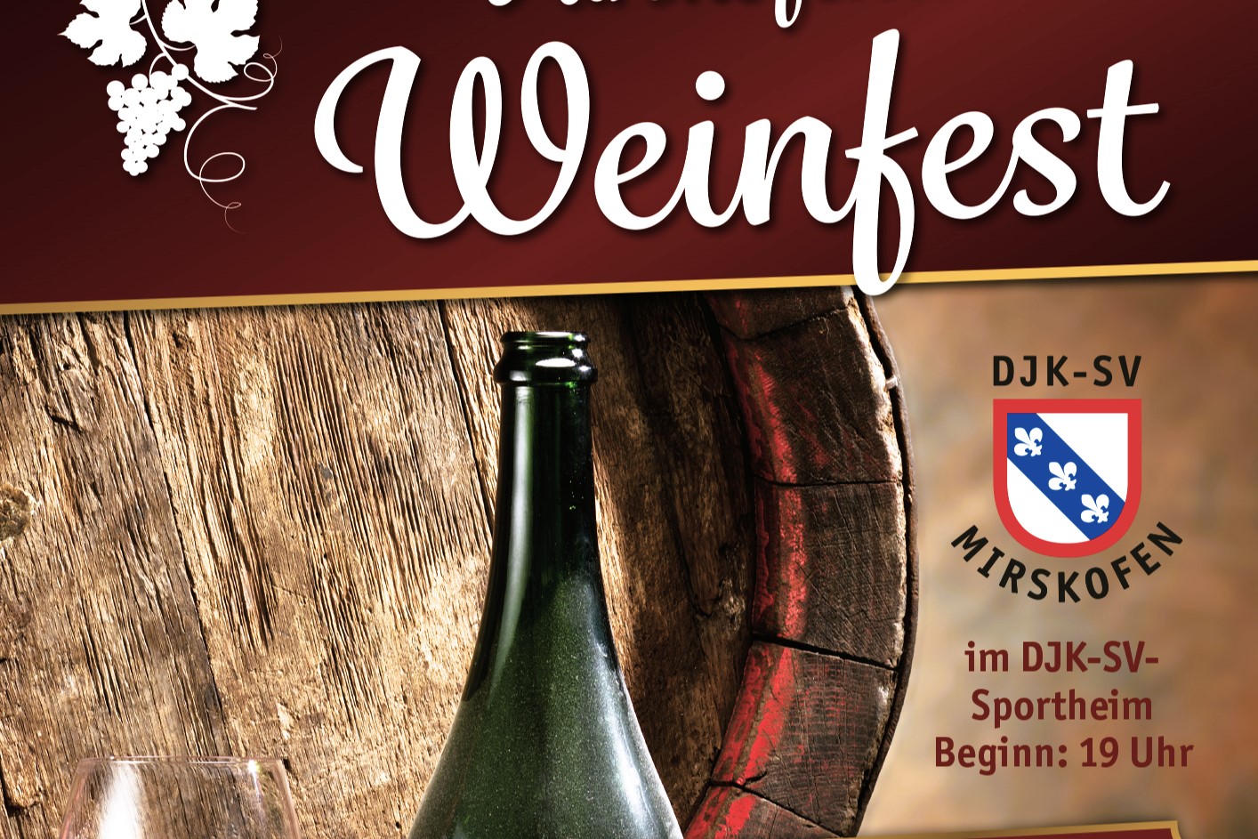 Mirskofen. Am Samstag, 25. Oktober, findet das diesjährige Mirskofener Weinfest im Sportheim des DJK-SV Mirskofen statt. Neben feinen Weinen und deftigen Brotzeiten ist im Saal Live-Musik von den Ragged Boots geboten. Der Eintritt ist frei. Der DJK-SV freut auf zahlreiche Gäste. Foto: DJK-SV Mirskofen