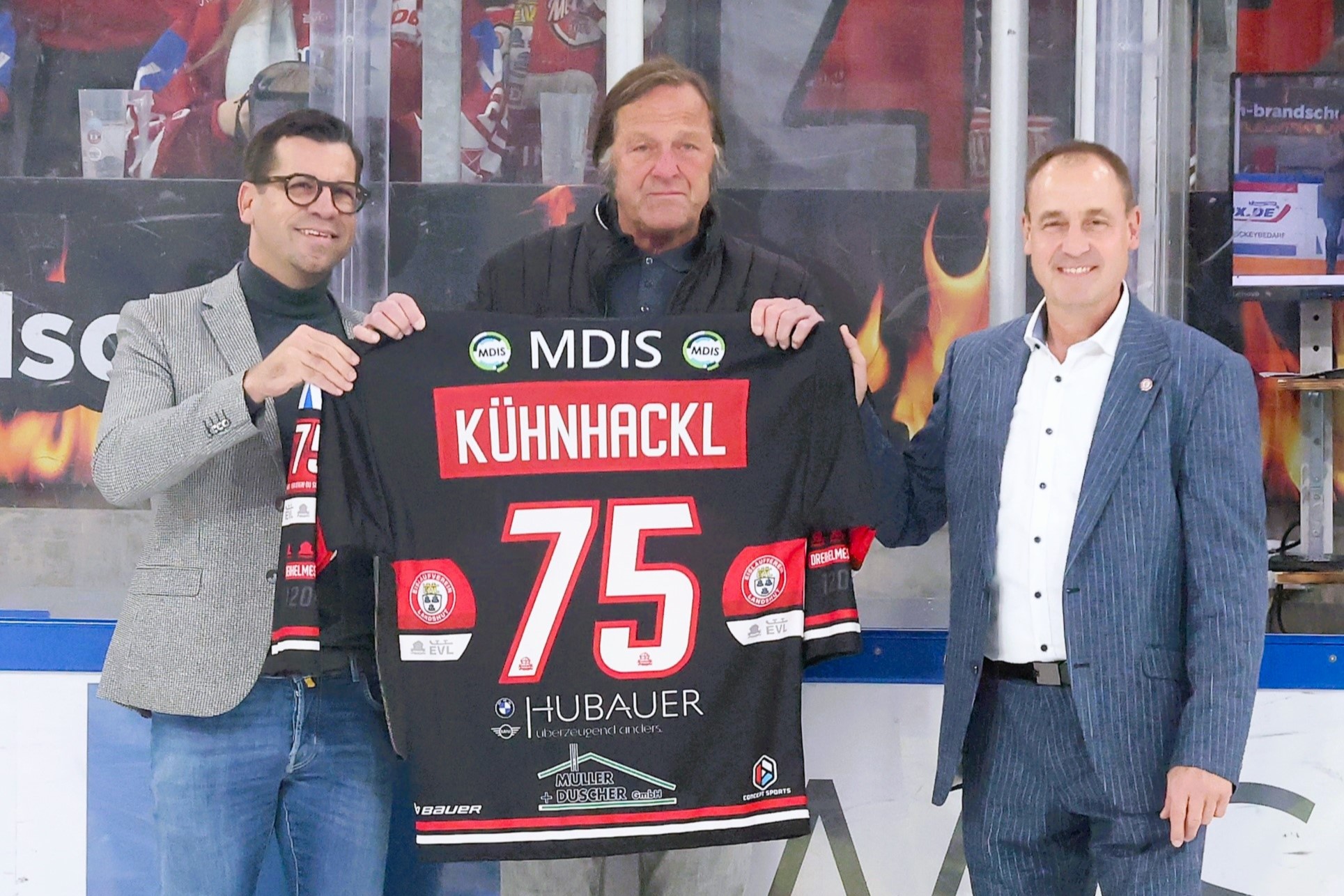 Es war eine ganz besondere, sehr emotionale Szene, deren Zeugen die 3.500 Zuschauer beim Heimspiel des EV Landshut am Sonntag gegen die Bietigheim Steelers wurden: Kurz vor Spielbeginn betrat Erich Kühnhackl, EVL-Legende und Deutschlands „Eishockeyspieler des Jahrhunderts“, die Eisfläche – gemeinsam mit EVL-Präsident Alexander Steiger und Geschäftsführer Ralf Hantschke. Sie gratulierten der ewigen Nummer 14 des EVL von Herzen zum…