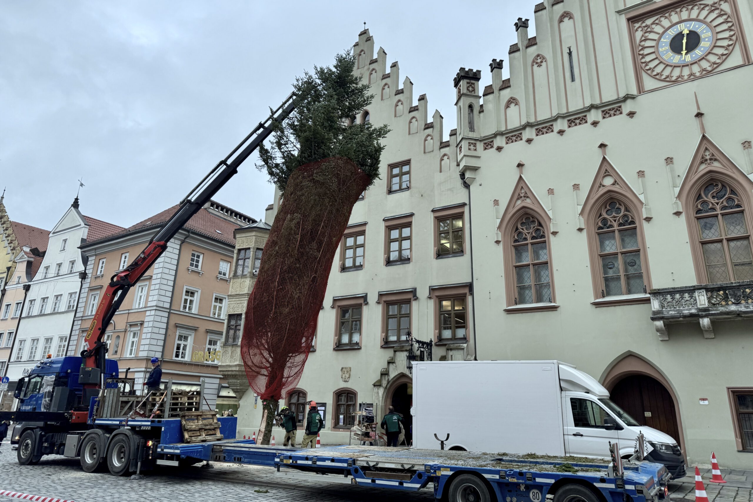 RATHAUS-CHRISTBAUM steht Mit schwerem Gerät spielte sich am Montag ein spektakuläres Schauspiel am Rathausvorplatz ab: Der rund 15 Meter hohe Christbaum wurde aufgestellt. Die Weißtanne, die knapp drei Tonnen auf die Waage bringt und rund 40 Jahre alt ist, wuchtete ein spezieller Autokran scheinbar mühelos in die Senkrechte. Ein spannender Moment, den auch zahlreiche Passanten in der Altstadt mitverfolgten. Der…