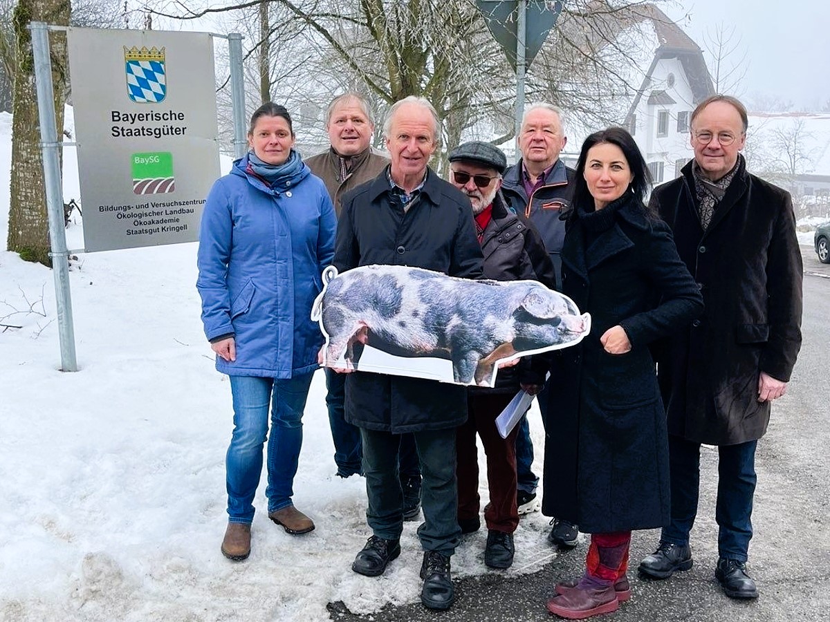 Ende der Bio-Schweinehaltung im Staatsgut Kringell „auch wirtschaftlich unklug“ Die Co-Landesvorsitzende der ÖDP Bayern Agnes Becker (links), der niederbayerische Bezirksrat Urban Mangold (rechts), die politische Geschäftsführerin der ÖDP Bayern, Ronja Zöls-Biber (2.v.r.), und weitere ÖDP-Aktive aus dem Landkreis Passau. Bild: ÖDP Bayern Die ökologische Schweinehaltung am Lehr- und Versuchsbetrieb in Kringell soll bald Geschichte sein. Damit wird der einzige staatliche…