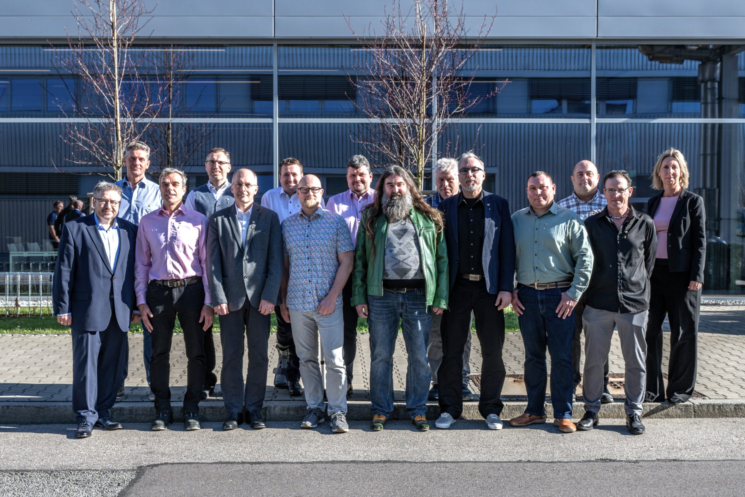 Bild 2: Personalleiterin Anna Sponsel (rechts) und Betriebsratsvorsitzender Bernhard Ebner (links) mit den Jubilaren, die im April ihre 25-jährige Betriebszugehörigkeit feierten.