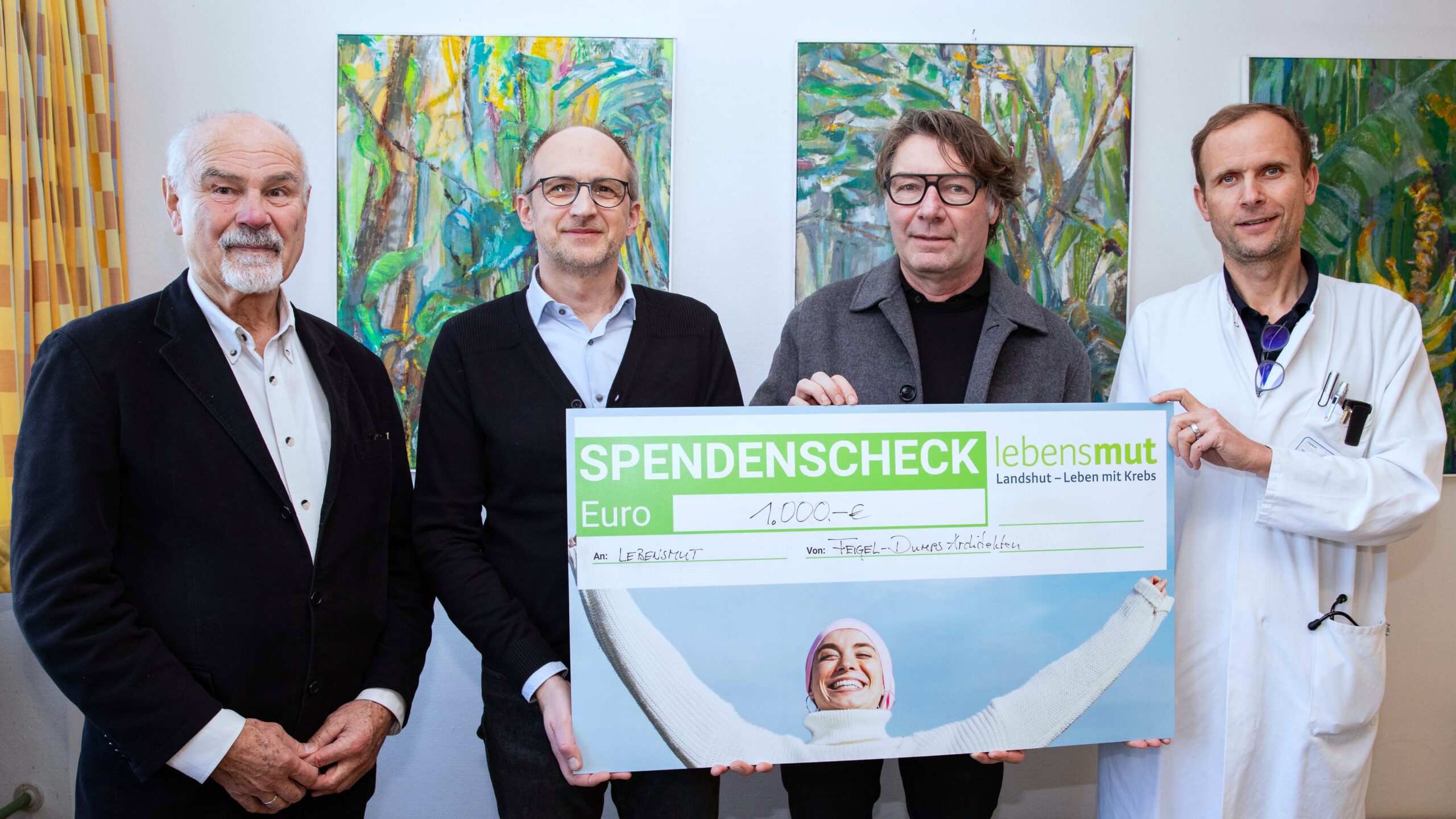 Die Übergabe fand am 18. Dezember 2025 in der Klinik Landshut-Mitte statt. Überreicht wurde der Betrag von Stefan Feigel und Thomas Dumps von den Architekten BDA Partner mbB.