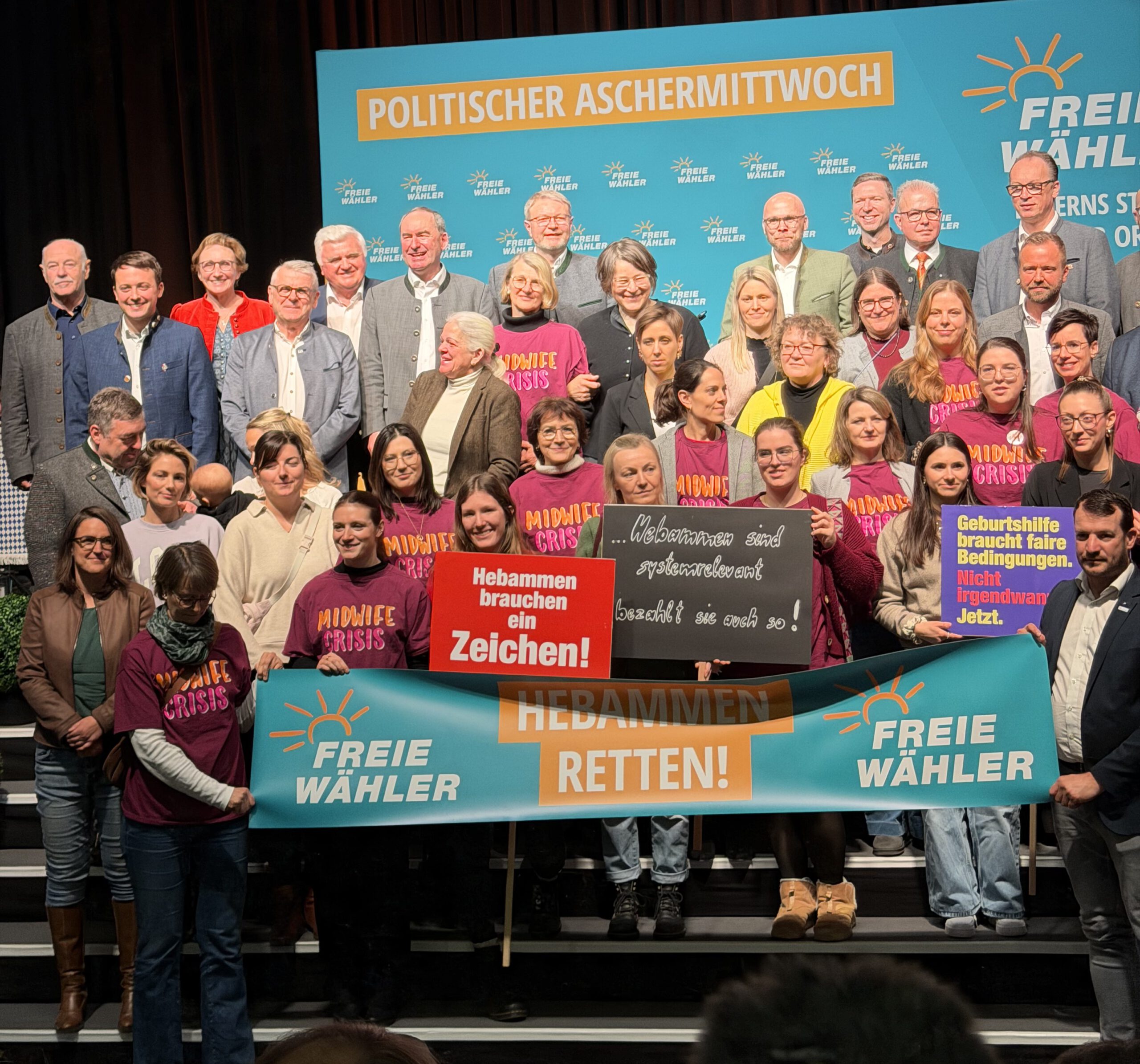 Hebammen als Ehrengäste beim Politischen Aschermittwoch 2026: FREIE WÄHLER stellen sich hinter sie – Aiwanger forderte Nachverhandlung des Hebammenhilfevertrags Deggendorf. Bei der Veranstaltung begrüßten die FREIE WÄHLER Bayern mehr als 50 Beleghebammen und freiberufliche Hebammen, die als Ehrengäste eingeladen wurden. Vor der Halle machten sie mit einer Kundgebung auf ihre existenzbedrohende Situation aufmerksam, im Saal wurden sie offiziell willkommen geheißen.…