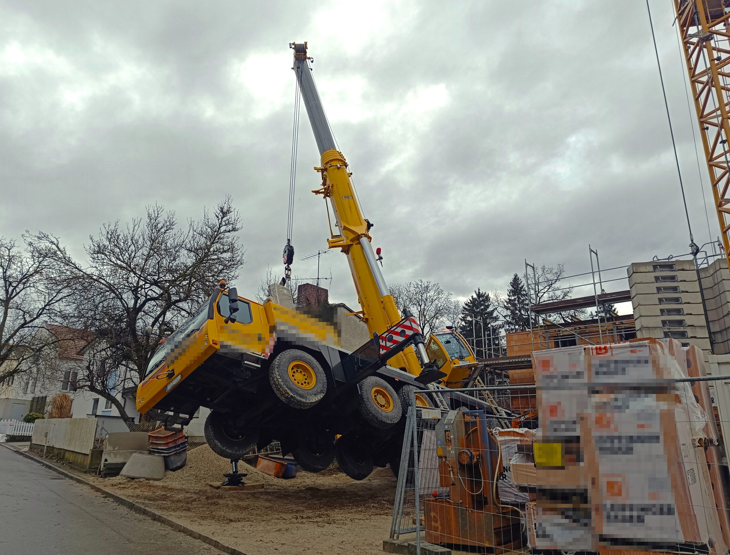 Ein in Schieflage geratener Autokran hat am Mittwochmorgen auf einer Baustelle in Landshut-Achdorf für einen anfangs größeren Feuerwehreinsatz gesorgt.
