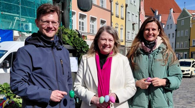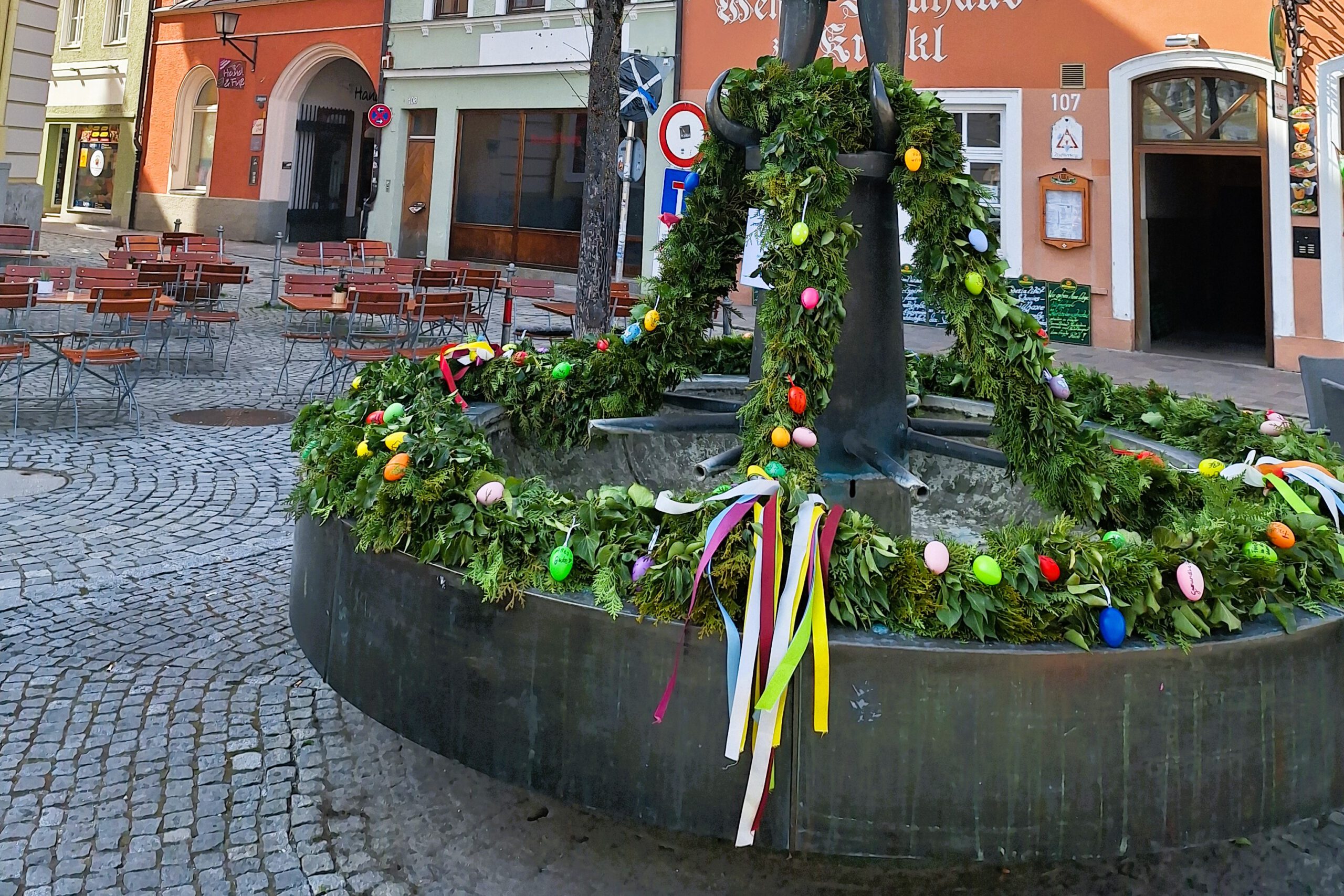 Wie bereits in den Vorjahren hatten Passanten und Besucher der Altstadt die Möglichkeit, gegen eine kleine Spende bunte Ostereier zu erwerben. Diese wurden vor Ort mit persönlichen Wünschen beschriftet und anschließend an den grünen Girlanden des Brunnens befestigt. Die Aktion erfreute sich erneut großer Beliebtheit. Menschen jeden Alters hatten viel Freude dabei, ihre persönlichen Botschaften und Grüße auf kreative Weise sichtbar zu machen.