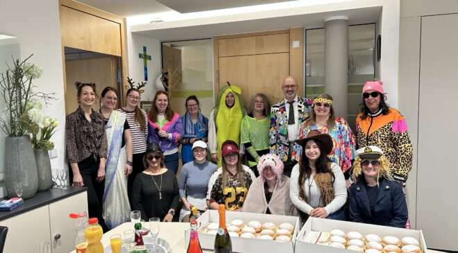 Unter dem Motto „Alles kann – nichts muss“ stürzten die Erwadinger Rathausweiber ins Geschäftszimmer des Bürgermeisters. Dort musste der Rathauschef das traditionelle Krawattenabschneiden über sich ergehen lassen. Strauß spendierte eine Runde Sekt und Krapfen für die Verwaltung und es war noch Zeit für ein paar lockere Gespräche.