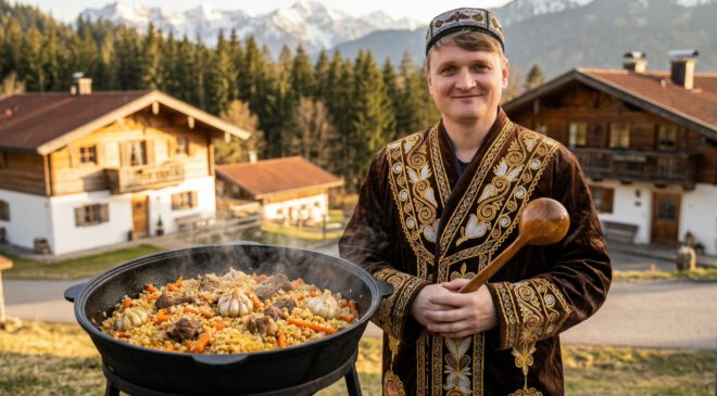 Auch beim Essen kann man über den Tellerrand eingefleischter Gewohnheiten schauen. Vor Ort wird Plov, ein Eintopf aus Rindfleisch mit Reis und besonderen Gewürzen, im Kessel zubereitet. Auch mit Samsa, Rindfleisch in Blätterteig, und Baursaki, einer Art salzigem Krapfen, kann exotische Kultur geschmeckt werden. Ebenso steht eine zentralasiatische Teezeremonie auf dem vielfältigen Programm, das unter der Leitung von Malika Naumova von den Stiftungsratsmitgliedern der Bürgerstiftung Landshut verantwortet wird.