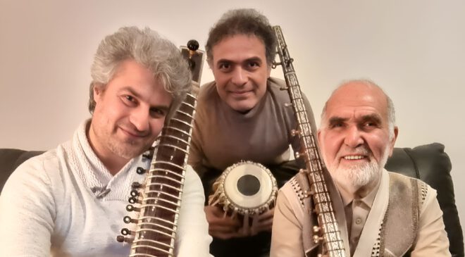 Beim zweiten Konzert am 16. Mai gastieren wieder einmal Ustad Rasul, Nasir und Monir Aziz aus Afghanistan mit klassisch-indische Ragas und afghanischer Folklore auf den Instrumenten Tambur, Sitar, Handpan und Tabla. Die Brüder Nasir und Monir waren (neben Auftritten in Russland und Frankreich) schon mehrfach zu Gast, zuletzt gemeinsam mit ihrem Vater, der ein wichtiger Teil vor allem in Nasirs musikalischer Biografie ist und ihn schon in frühester Jugend an der Tambur unterrichtete. Ustad Rasul war musikalischer Rundfunkdirektor in Kabul, vor allem aber ist seine Musik in der arabischen Welt legendär: Er ist unbestritten der letzte Meister seiner Generation, der den immensen Schatz des Wissens und Könnens des Repertoires, der Spieltechniken und des Baus der afghanischen Instrumente Tambur und Dotar hütet und über 60 Jahre lang Konzerte in Afghanistan, Usbekistan, Iran, Pakistan und auch in Deutschland und Frankreich gab.