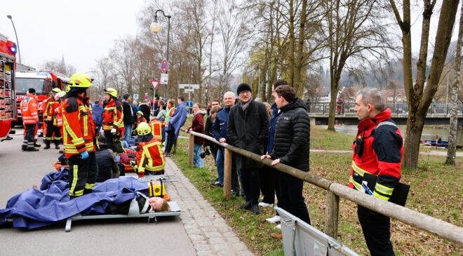 Einen großen Dank richteten die Verantwortlichen sowie Oberbürgermeister Alexander Putz an alle Mitwirkenden, insbesondere die freiwilligen Laiendarsteller, und die Bevölkerung für ihr Verständnis für die mit der Übung einhergegangenen Verkehrsbeeinträchtigungen.