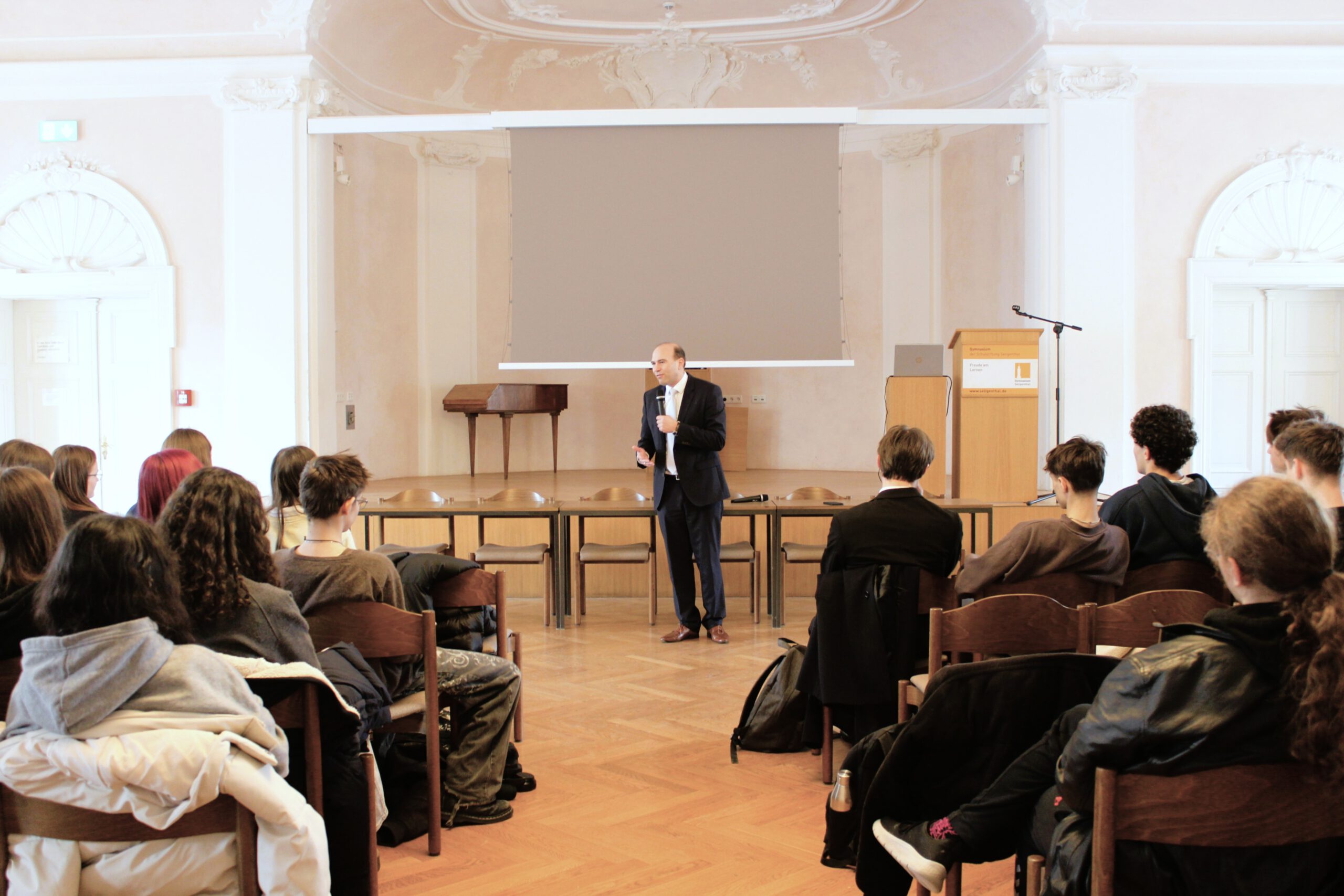 MdB Florian Oßner stellte sich im Gymnasium Seligenthal in Landshut den Fragen der Schülerinnen und Schüler.