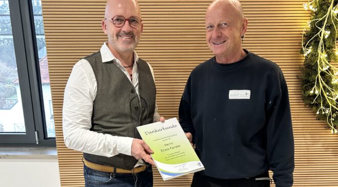 Erwin Forster wurde für 25 Jahre Dienst geehrt. Er ist im Ergoldinger Bauhof tätig.