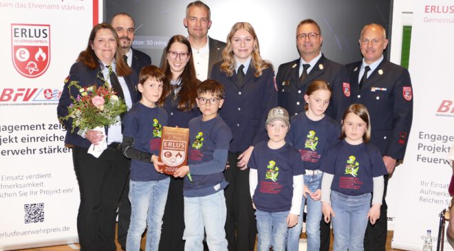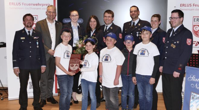 Ergoldsbach, April 2026. Für ihren Ideenreichtum in der Nachwuchsarbeit sind die Kinderfeuerwehren Geiselhöring, Pfaffenberg und Kößlarn mit dem ERLUS Feuerwehrpreis 2026 ausgezeichnet worden. Insgesamt wurden 6.000 Euro Preisgeld vergeben.