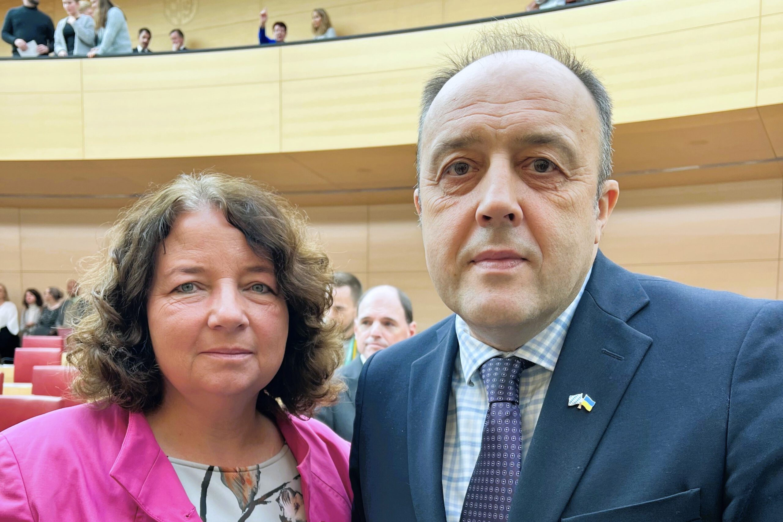 Die Landtagsabgeordnete Ruth Müller (SPD) nahm an der Veranstaltung teil und nutzte die Gelegenheit zu einem Austausch mit dem Generalkonsul der Ukraine, Yurii Nykytiuk.
