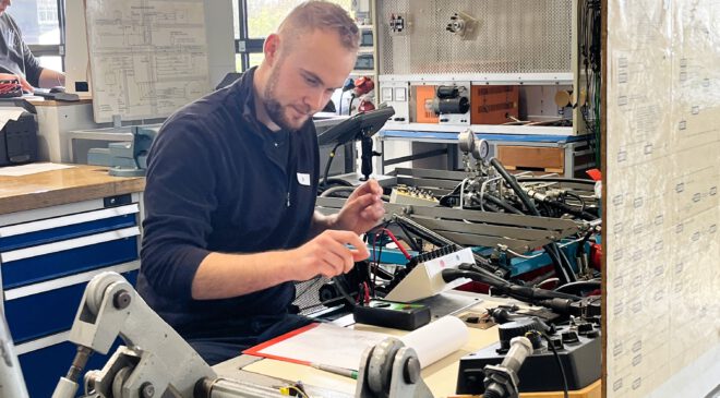 Insgesamt zwölf Aufgaben galt es zu bewältigen, die das gesamte Leistungsspektrum des Berufs Land- und Baumaschinenmechatroniker abbildeten. Dazu zählten unter anderem Einstellarbeiten an einem Motor, die Überprüfung einer Abgasnachbehandlung (SCR) am Fahrzeug, eine Hydraulik-Funktionsprüfung und die Fehlersuche an einer automatischen Lenkung. An Land- und Baumaschinen war von der Motorsäge über Bagger und Erntemaschine bis hin zum Schlepper alles mit dabei. Von seinem Bundessieg war Elias Schätzle aus Baden-Württemberg sichtlich überrascht. Seine Teilnahme am Wettbewerb war relativ spontan. Der erste Landessieger in Baden-Württemberg war zum Bundesentscheid nicht angetreten, sodass Schätzle als zweiter Landessieger eingesprungen ist. „Ein paar Stationen liefen sehr gut, an anderen war es schwieriger. Auch deswegen habe ich damit überhaupt nicht gerechnet“, freute sich der 20-Jährige.