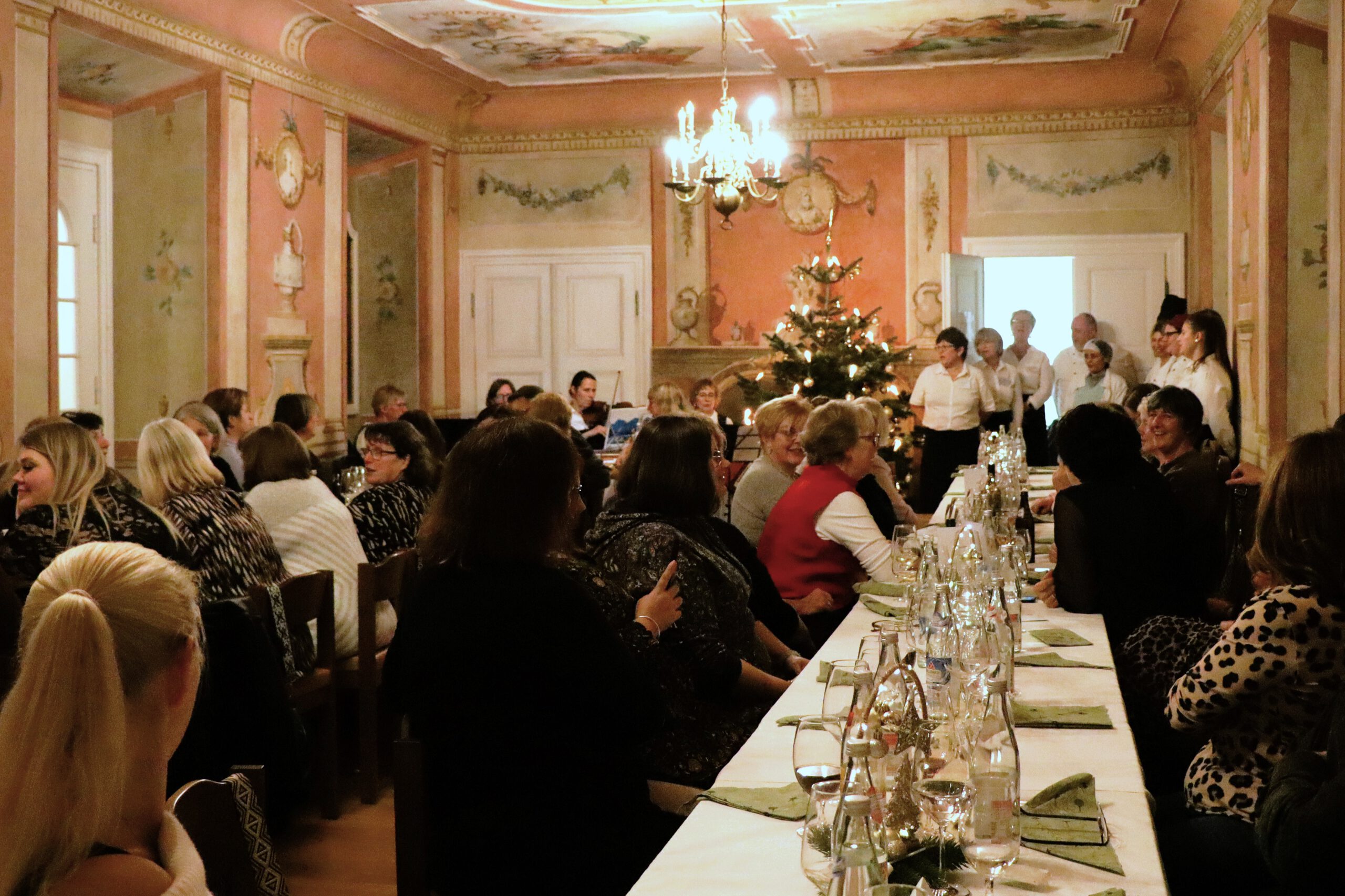 Bildunterschrift 1: Im festlich geschmückten Kaisersaal stimmten sich die Mitarbeitenden der Schlossklinik Rottenburg auf Weihnachten ein (Titelbild) Bildquelle 1: Carmen Blendl / LAKUMED Kliniken