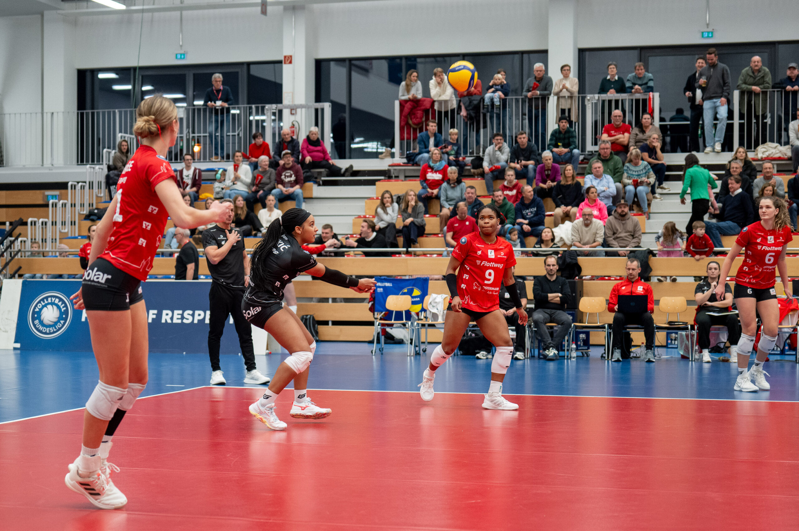 Bei den Rabenspielerinnen merkte man, dass sie sich erst einmal auf die neue personelle Situation einstellen mussten. Schließlich fehlte mit Jeannette Huskic eine der durchschlagkräftigen Raben-Außenangreiferinnen. Sie konnte dafür ihre Fähigkeiten als Libera unter Beweis stellen.