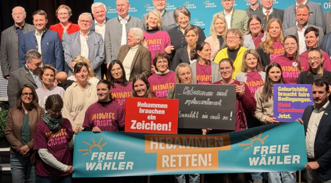 Die FREIEN WÄHLER Bayern begrüßen beim Politischen Aschermittwoch in diesem Jahr über 50 Beleghebammen und freiberufliche Hebammen als Ehrengäste. Mit einer Kundgebung machen sie auf ihre existenzbedrohende Lage aufmerksam. Gemeinsam setzen FREIE WÄHLER und Hebammen ein klares Zeichen gegen den seit November 2025 geltenden Hebammenhilfevertrag, der insbesondere freiberufliche Hebammen stark belastet und die Geburtshilfe – vor allem im ländlichen Raum – gefährdet.