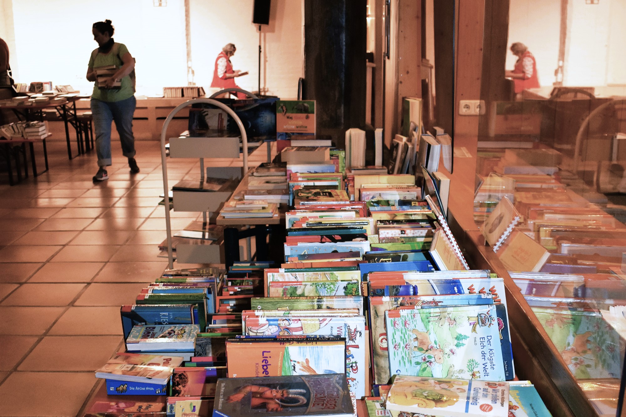 Zwischen dicht bepackten Tischen und gut gefüllten Bücherkisten lassen sich Lese-Schätze finden – sei es ein lang gesuchter Klassiker, ein spannender Krimi für den Urlaub oder ein nostalgisches Kinderbuch aus vergangenen Zeiten. Das vielfältige Angebot reicht von Romanen, Comics, Märchen und Taschenbüchern über Zeitschriften bis zu Bilder-, Kinder- und Jugendbüchern. Medienfans kommen ebenfalls auf ihre Kosten: Auch zahlreiche CDs, DVDs und Hörbücher stehen zum Stöbern bereit. Mit etwas Glück lassen sich wahre Raritäten finden, die im Handel längst vergriffen sind. Besucherinnen und Besucher können dabei nicht nur Lese- und Hörschnäppchen ergattern – sie unterstützen mit ihrem Kauf auch die sozialen Projekte der Freiwilligen-Agentur.