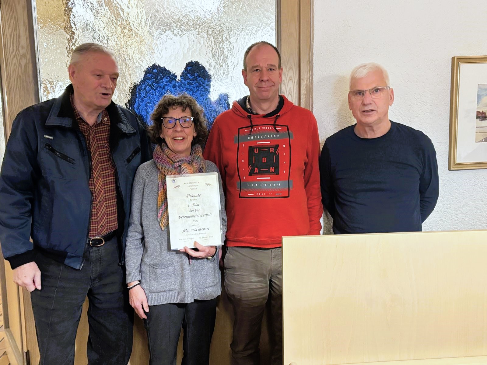 Die gut besuchten Spielabende mit 24 aktiven Spielern wurde die Preisverteilung vorgenommen. Vereinsmeisterin wurde Manuela Scharl vor Dieter Thürmer und Walter Behmer. Werner Feller wurde für 10 Jahre Mitgliedschaft geehrt.