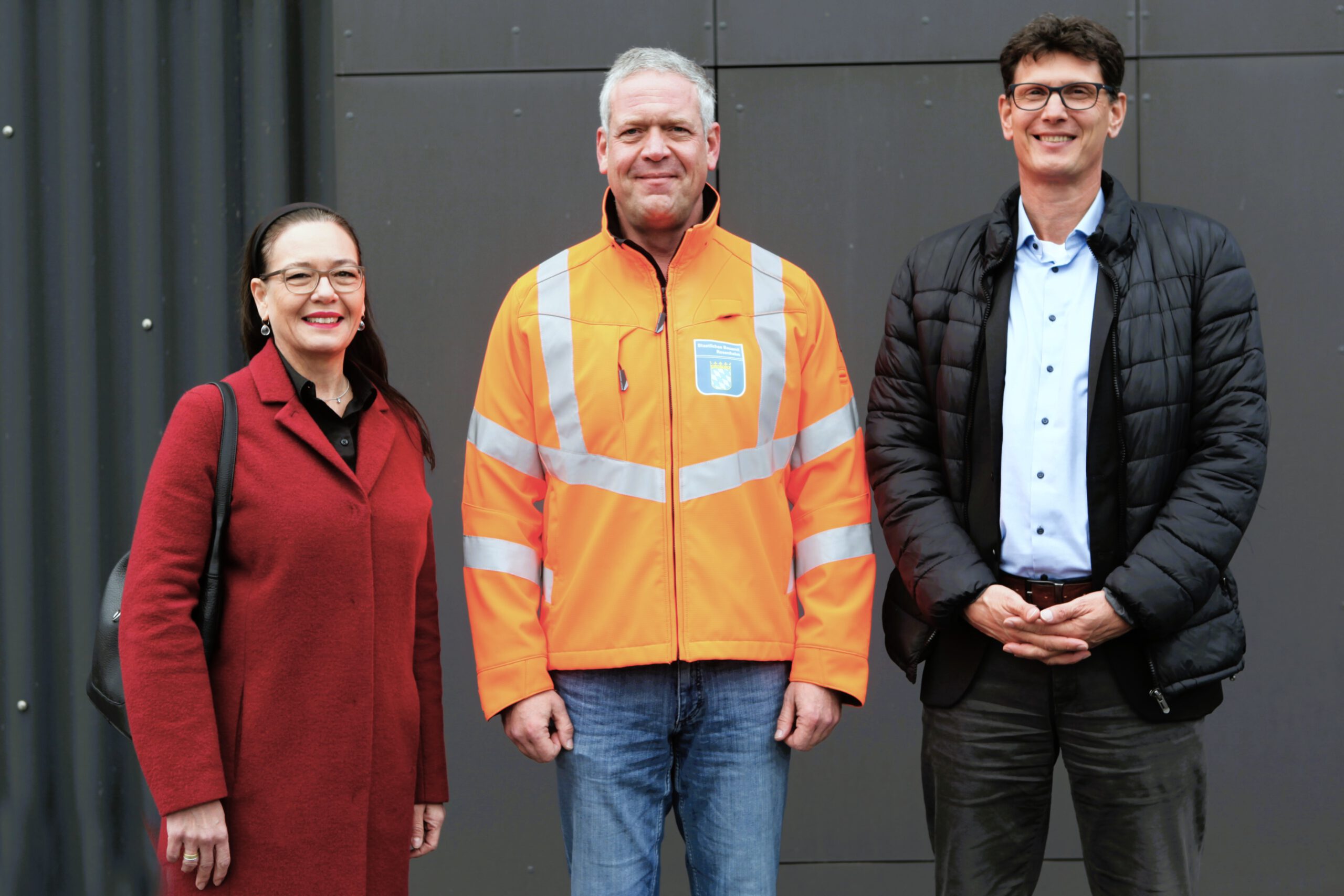 Bildunterschrift: Leitende Baudirektorin Uta Riedel und Baudirektor Stefan Leitner begrüßten Andreas Eitner als neuen Straßenmeister an der Straßenmeisterei Landshut.