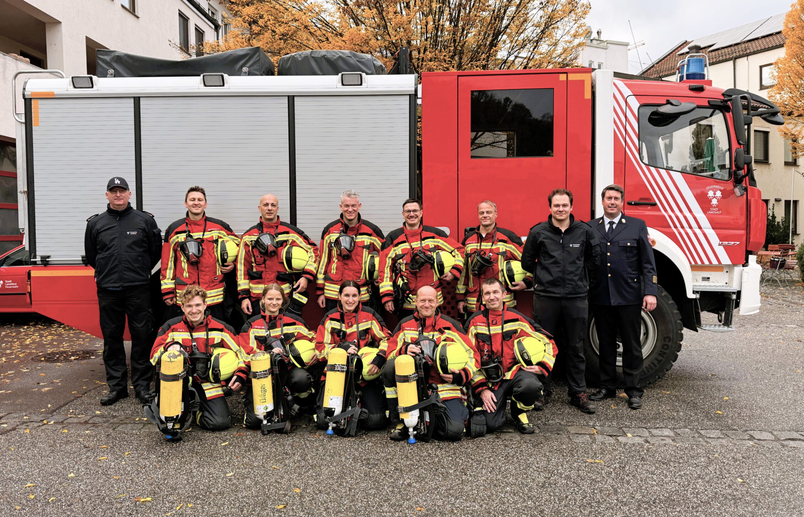 Die Freiwillige Feuerwehr der Stadt Landshut hat in den letzten Wochen in Eigenregie weitere zehn neue Atemschutzgeräteträger (2 Feuerwehrfrauen, 8 Feuerwehrmänner) ausgebildet.